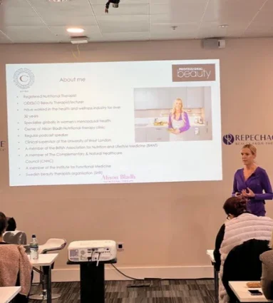 Regular speaker at international industry events and for skin care brands, including Cosmoprof Bologna, Professional Beauty UK, Hud och Kosmetik and CIDESCO international events and webinars. I am also a frequent podcast guest, invited to talk about skin, menopause and women’s health and I deliver in salon education events for clinics and salons and their clients.